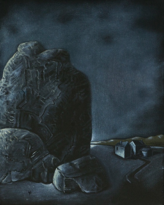 Häuser hinter dem Felsen / Acryl und Öl auf Leinwand / 50 x40 cm / 2013