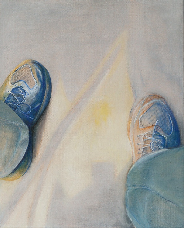Nach vorne gebeugt und nachdenkend / Acryl und Öl auf Leinwand /